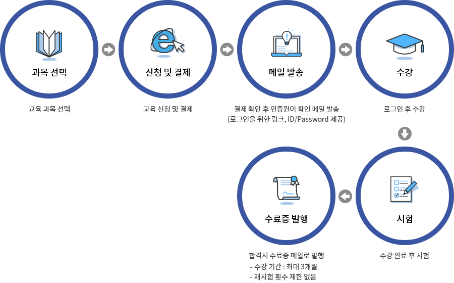 ※ 모든 온라인 교육 및 시험은 영어로 진행됩니다. 이점 유념해 주시기 바랍니다.